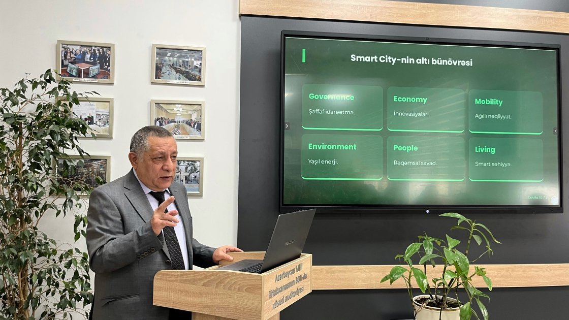 BDU-dan bildirilib ki, seminarda BDU-nun Sənəd menecmenti kafedrasının müəllimi Əliyusif Məmmədov “Ağıllı şəhər” konsepsiyasında memarlıq və şəhərsalma sənədlərinin rəqəmsallaşdırılması” mövzusunda məruzə ilə çıxış edib.