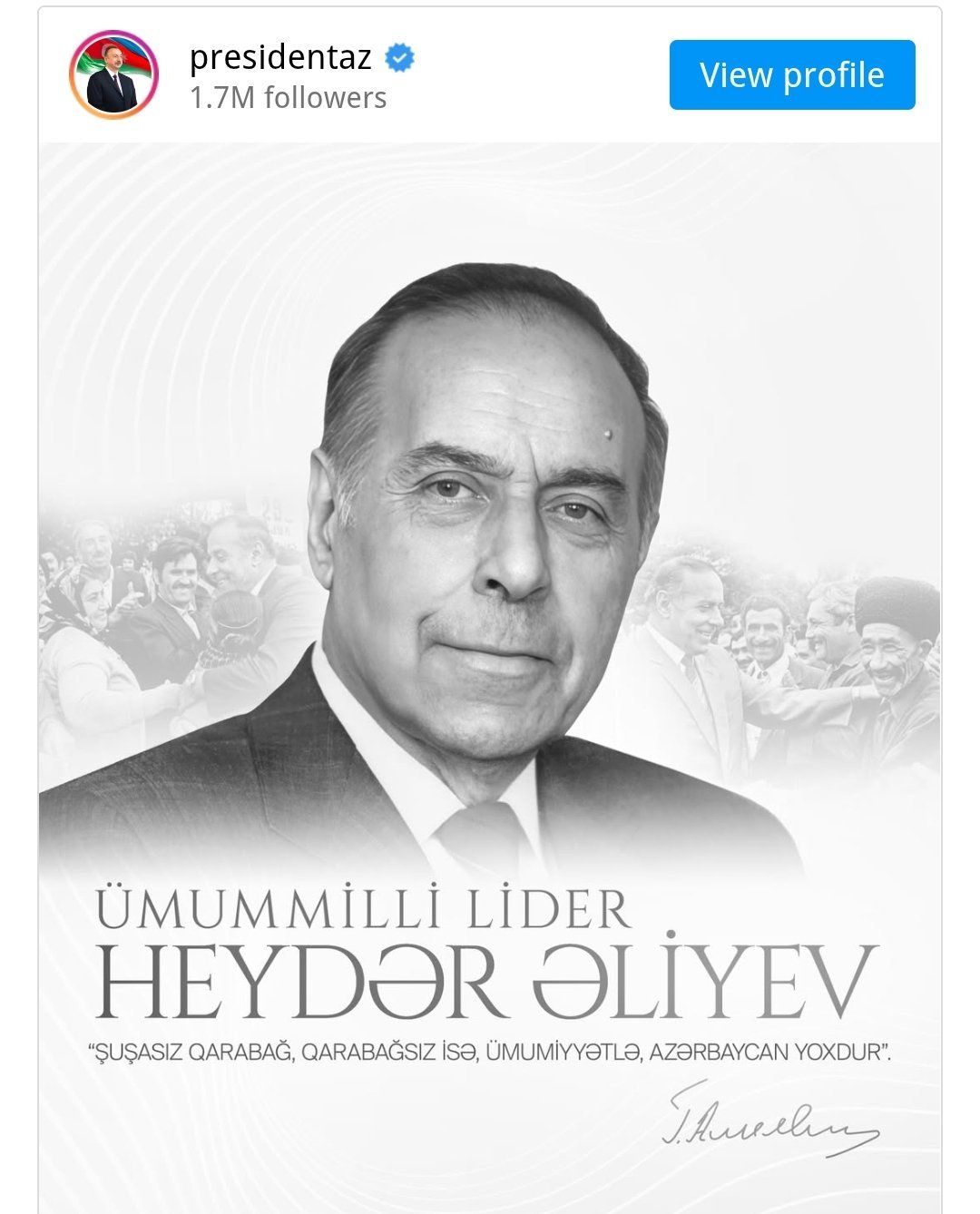 Azərbaycan Respublikasının Prezidenti İlham Əliyev ümummilli lider Heydər Əliyevin anım günü ilə bağlı paylaşım edib.