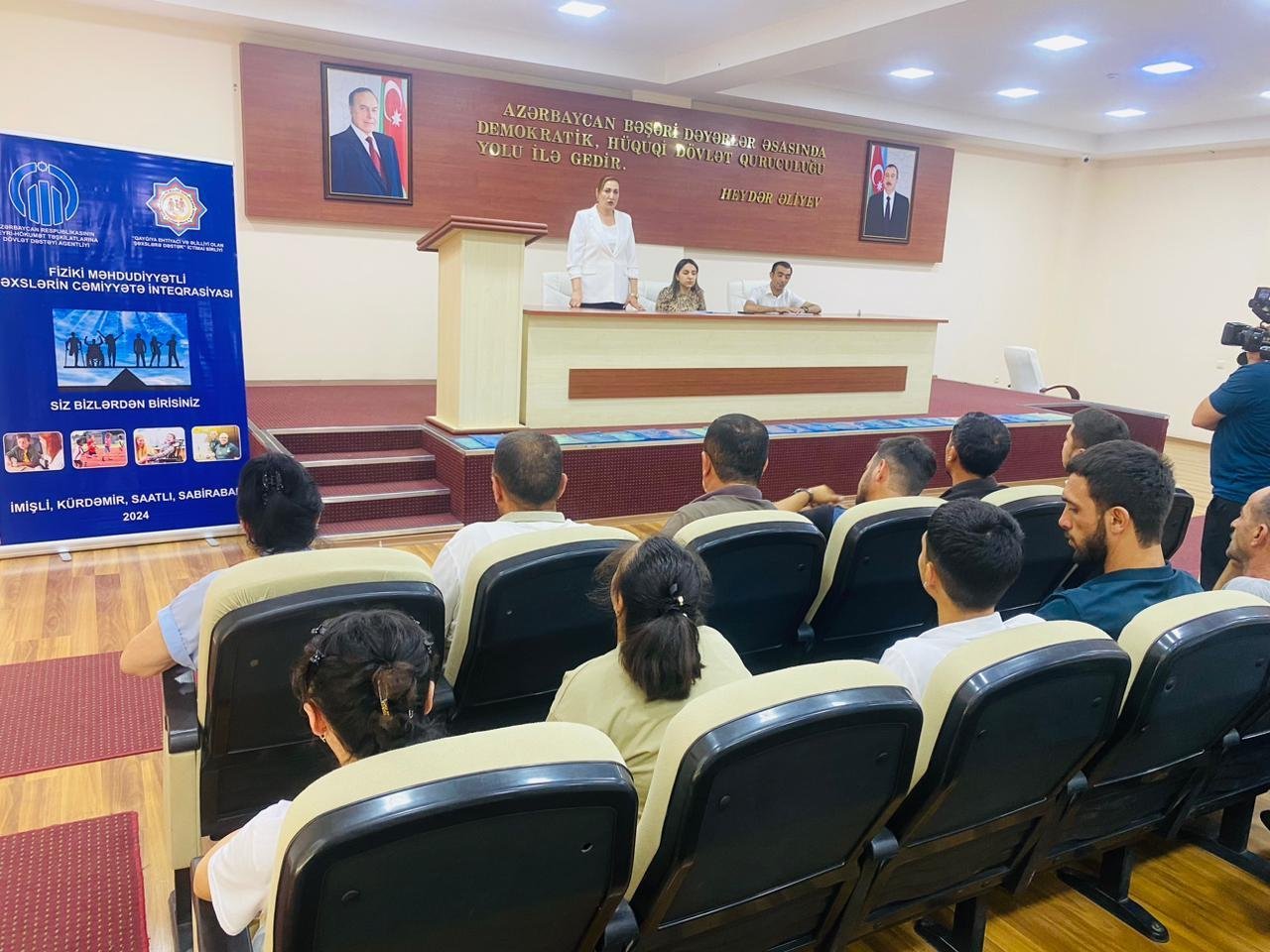 Tədbirdə iştirak edən psixoloq Kərimli Gültac fiziki məhdudiyyətli şəxslərin bəzi istiqamətlər üzrə qarşıya çıxan problemlərin yaranma səbəbləri haqqında onlara dəstək proqramları çərçivəsində oluna biləcək köməkliklərin vacibliyini vurğulayıb.