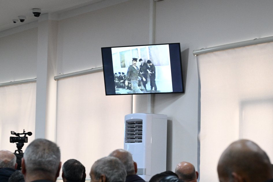 İttiham tərəfinin çıxışları zamanı məhkəmə zalındakı təqsirləndirilən şəxslərin ittiham olunduğu cinayətlər üzrə fotoşəkillər də nümayiş etdirilib.