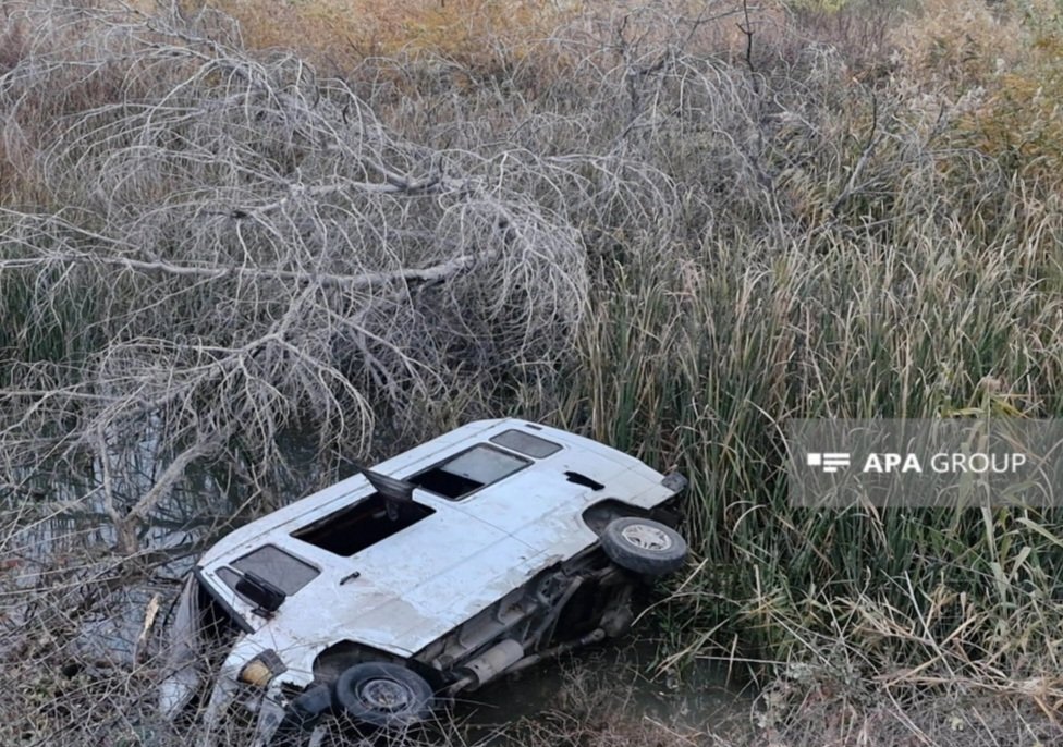 Şəmkirdə mikroavtobus su kanalına aşıb.