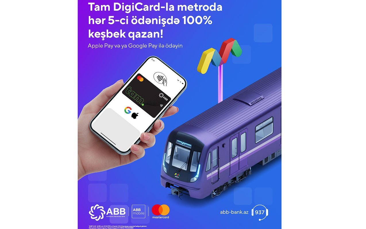 Müştərilərinə daim innovativ həllər və faydalı imkanlar təqdim edən ABB metro istifadəçiləri üçün yeni kampaniyaya start verib. Kampaniya çərçivəsində “Mastercard Tam DigiCard” sahibləri metro keçidlərində “Apple Pay” və ya “Google Pay” vasitəsilə etdikləri hər 5-ci ödənişə görə 100% keşbek qazanacaqlar.